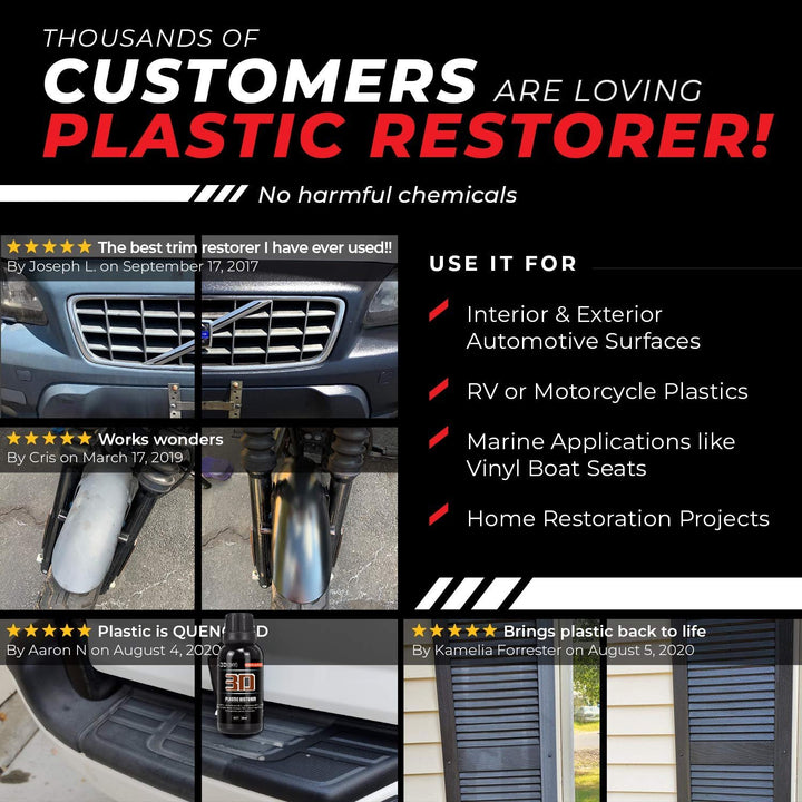 - Streak-Free Formula: Unlike other trim products, this won't leave your vehicle with any streaky residue after a rain shower or car wash