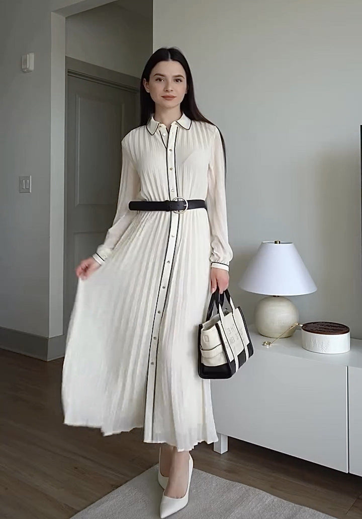 More than just a dress, this piece is a statement of refined taste. From its meticulous pleating to its carefully placed black trim, every detail is designed to make you stand out—effortlessly. Whether you’re celebrating a special moment or elevating your everyday style, this white pleated dress is the perfect blend of elegance and comfort.