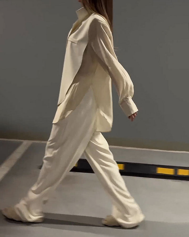 Fashion Lar Patchwork Shirt & Pants Two-Piece Set