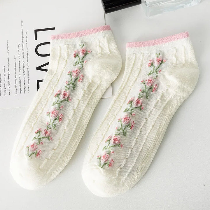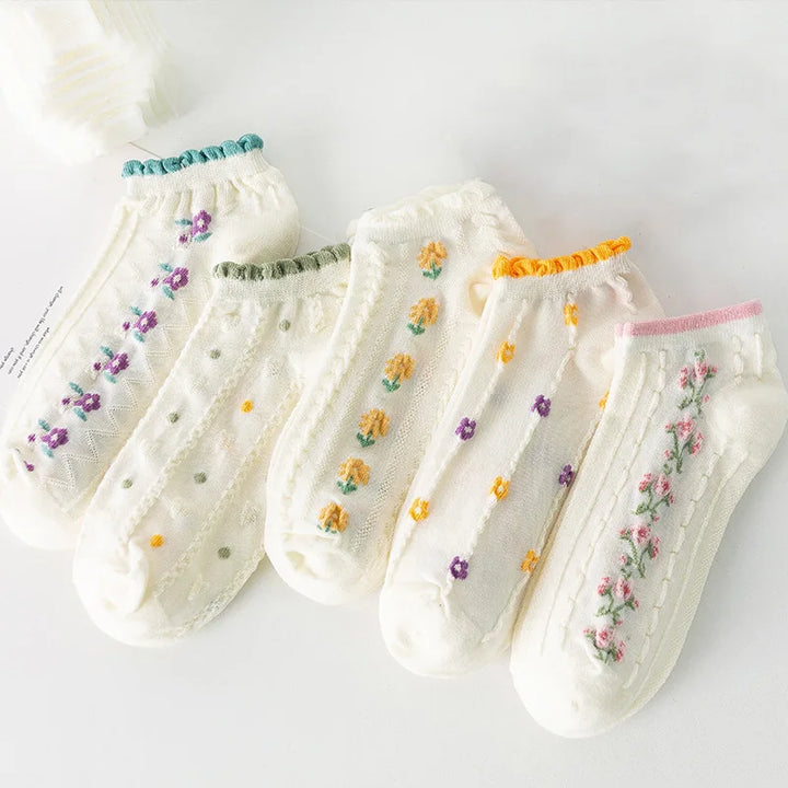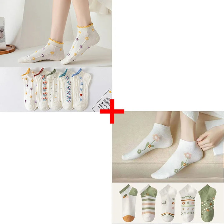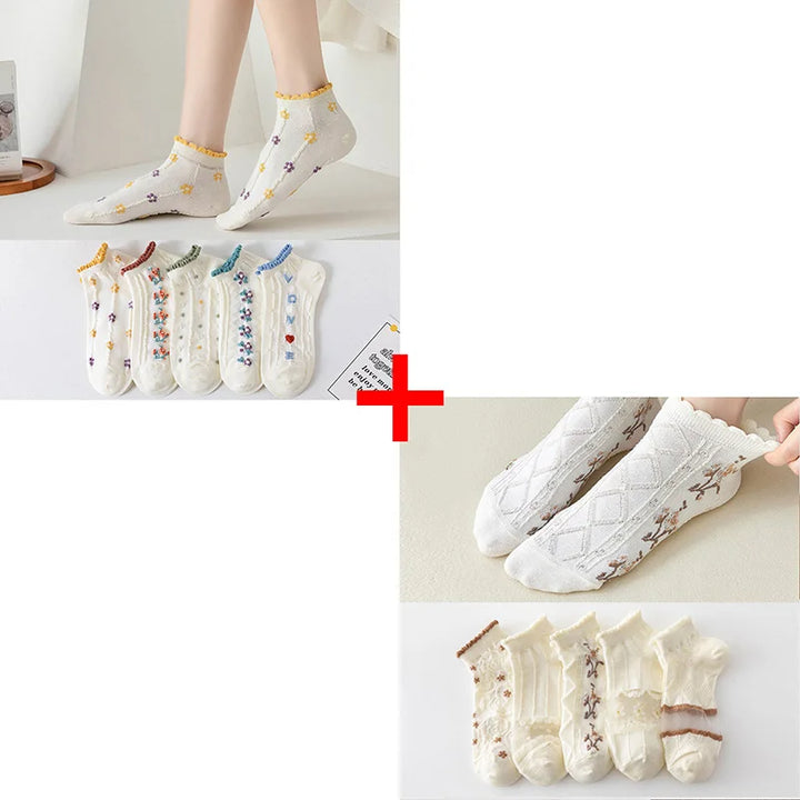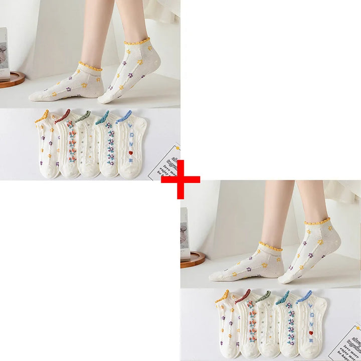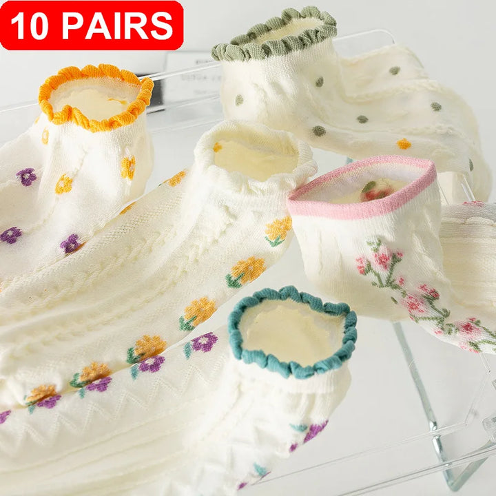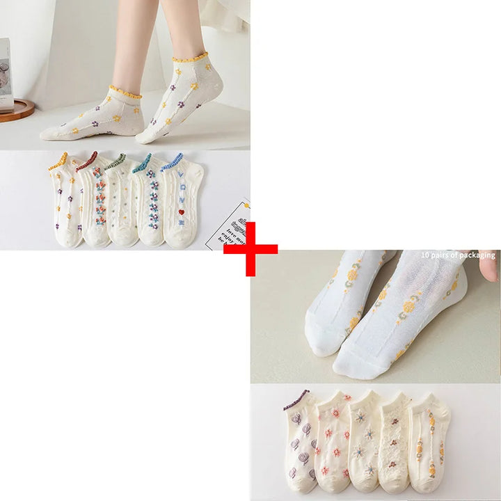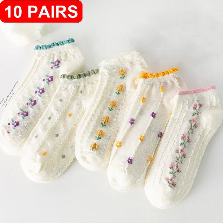 10 Pairs/lot Women Cute Socks Spring Autumn Summer Korea White Flower Socks Ins Fashion Japanese Low Tube Boat Sock Cotton Meias