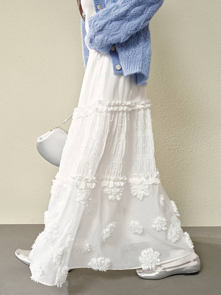 Embrace ethereal elegance with our Tiered Lace Maxi Skirt, a 2025 Spring masterpiece blending French sophistication with avant-garde design. Featuring three graduated tiers of intricate floral lace and a hidden adjustable drawstring waist, this skirt sculpts your figure while offering cloud-like movement. The sheer overlay cascades over a modesty lining, creating depth and dimension perfect for romantic dates, garden parties, or elevating everyday style.