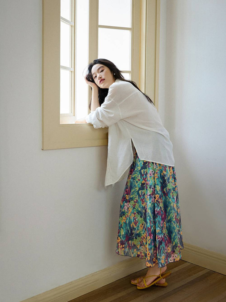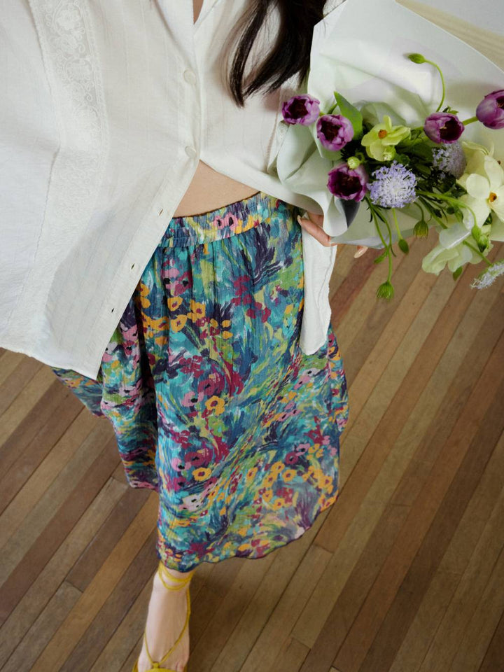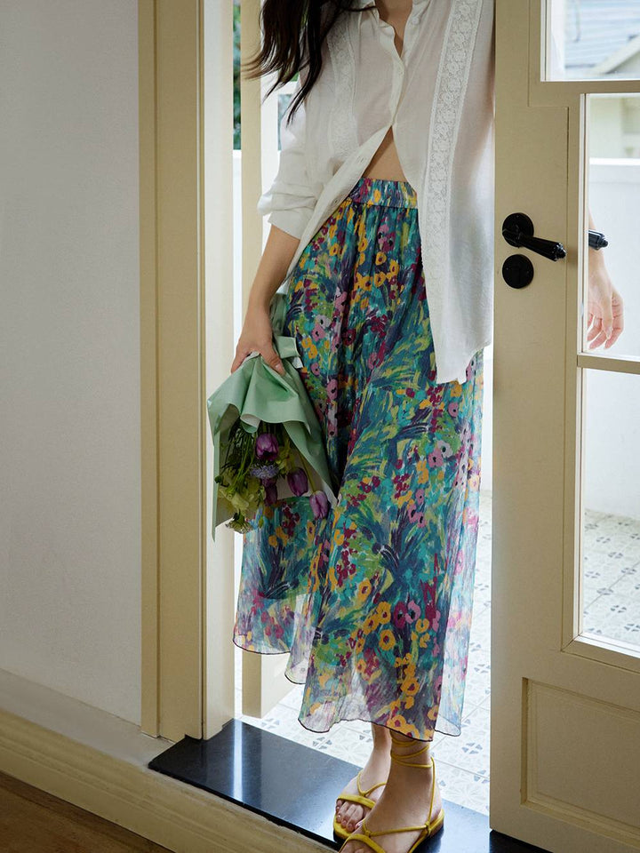 Embrace romantic femininity with our French Oil Painting Floral Skirt, designed for the free-spirited woman (18-30) seeking timeless style. Featuring an elasticated waistband for cloud-like comfort and a fluid A-line silhouette, this skirt drapes beautifully to accentuate your curves while offering unrestricted movement. The artistic floral print—inspired by vintage oil paintings—adds a touch of poetic whimsy, perfect for brunches, dates, or elevating everyday outfits.
