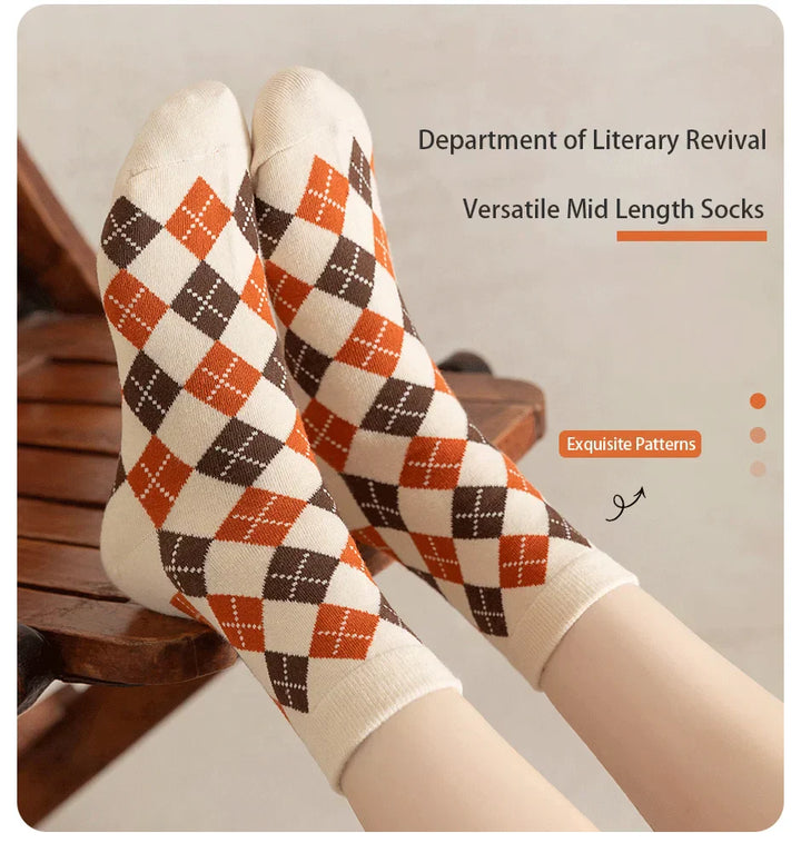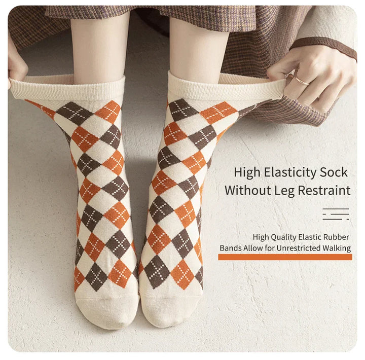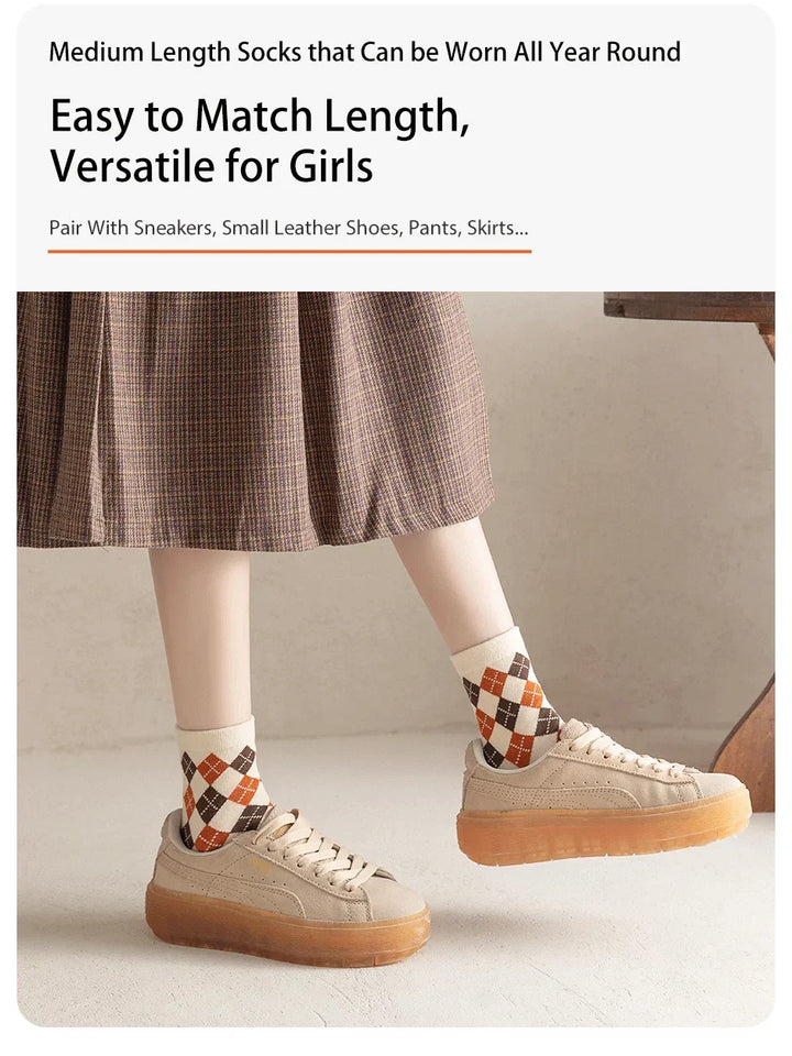 • Flattering Design :Featuring a vintage flower diamond plaid stripe design, these socks add a touch of elegance to your outfit.