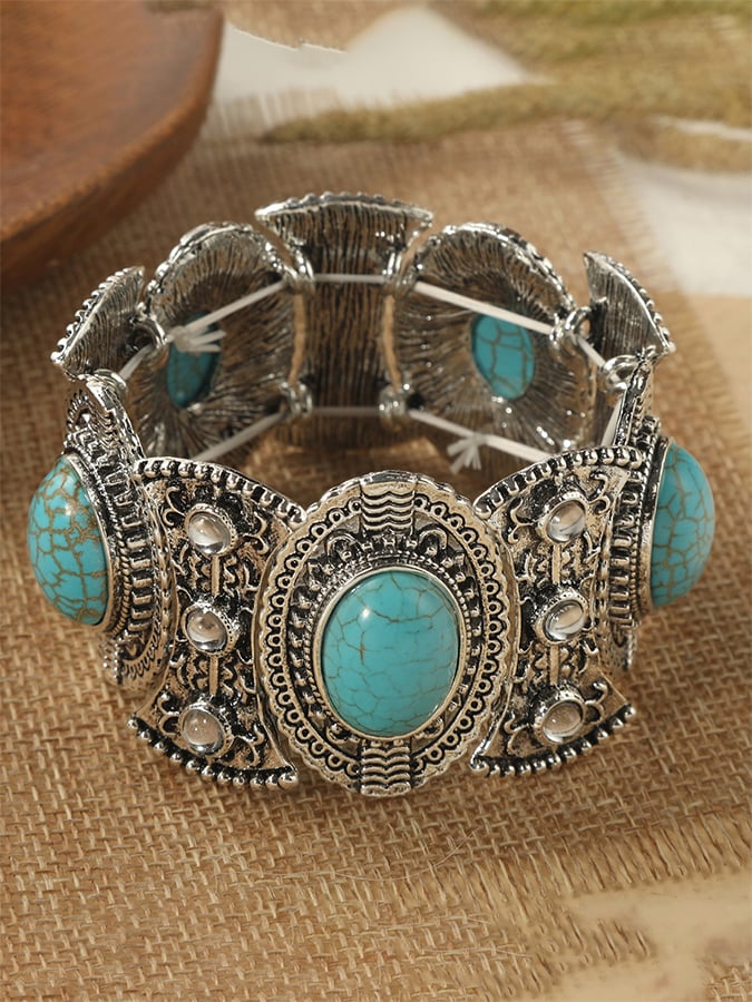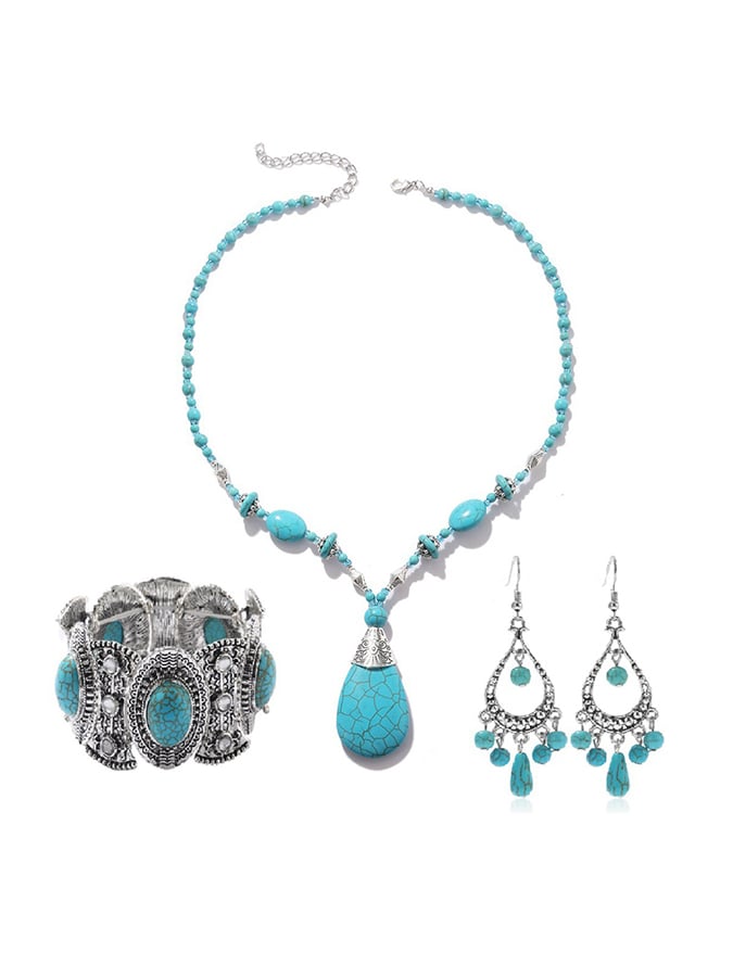 Vintage Turquoise Pendant Bohemian Beaded Ethnic Jewelry Turquoise Necklace Earring Set