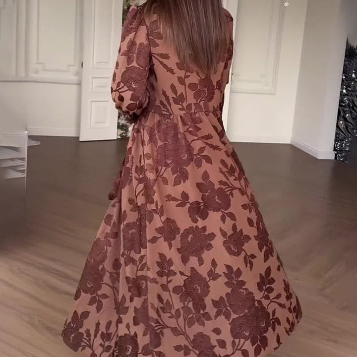 ELEGANT BROWN ALLOVER PRINT: This stylish button-down dress features a chic, elegant brown floral print, offering a sophisticated look ideal for both casual and semi-formal occasions.