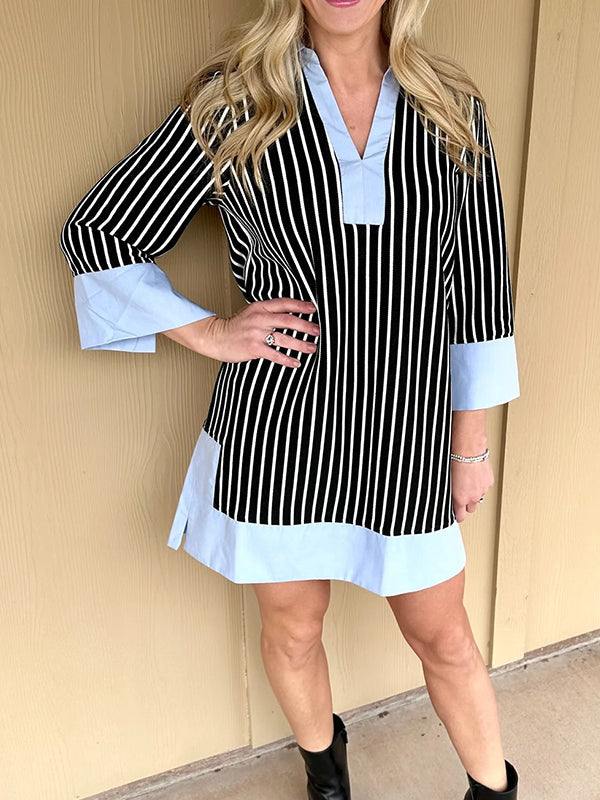 The Striped Split V Neck Collared Shirt Dress is a versatile and stylish addition to any wardrobe. With its unique design elements and comfortable fit, it is perfect for both casual outings and more formal occasions. Embrace the effortless elegance of this dress and let it become your go-to piece for a variety of events.